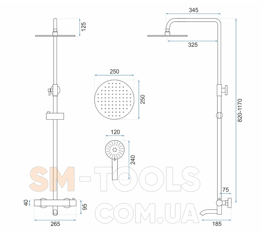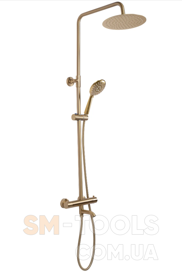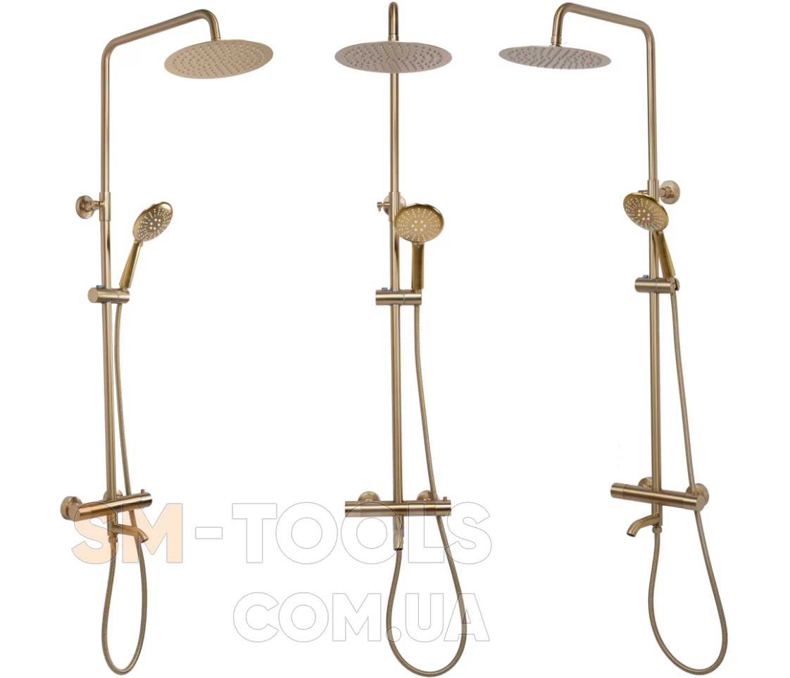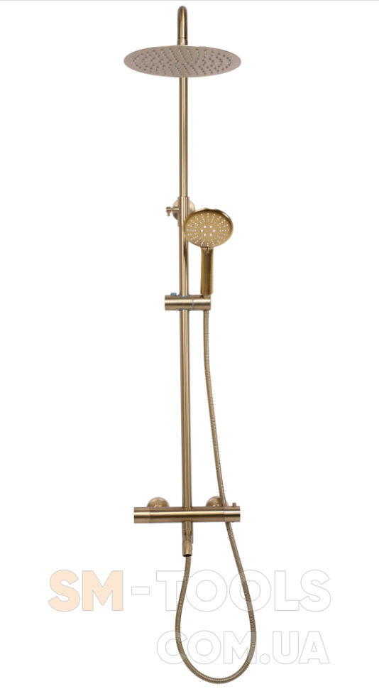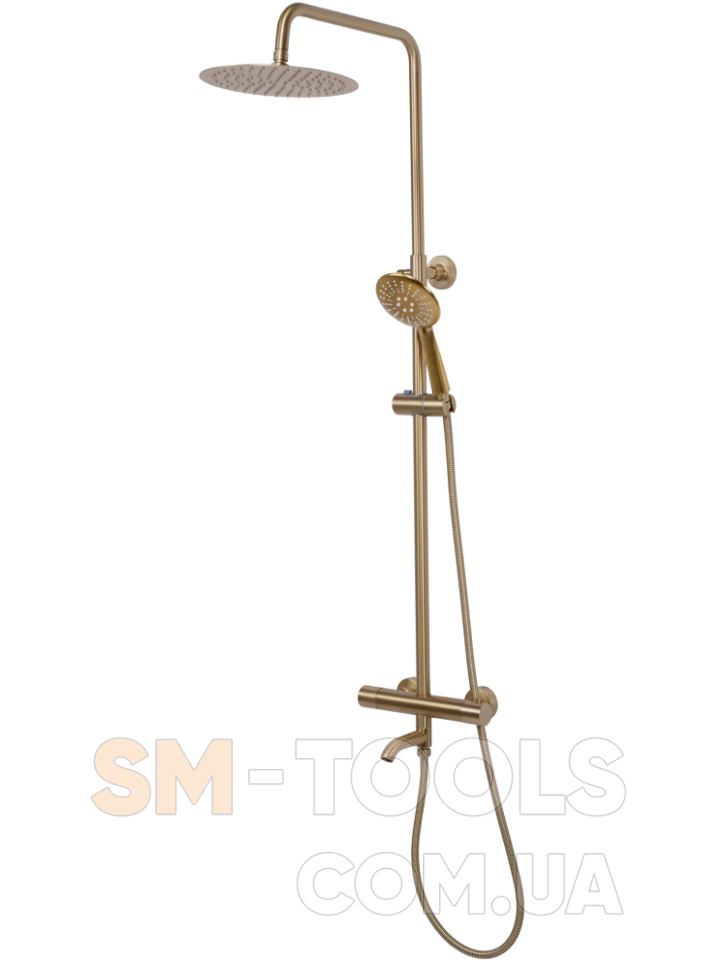 Характеристики Душовий гарнітур REA LUNGO BRUSHED GOLD з термостатом та виливом: