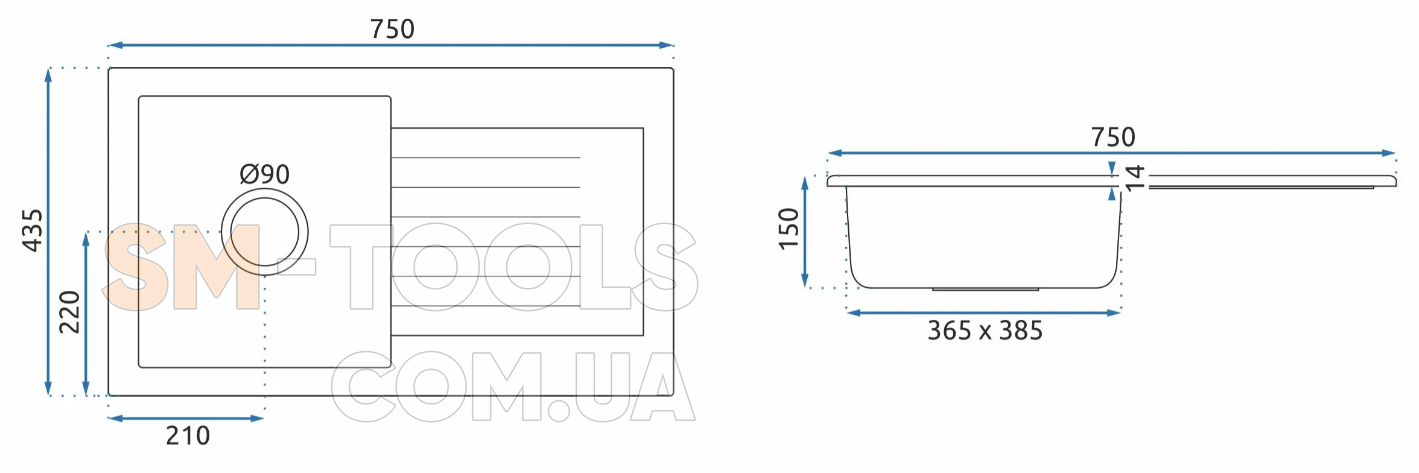Ширина мойки (мм) : 750