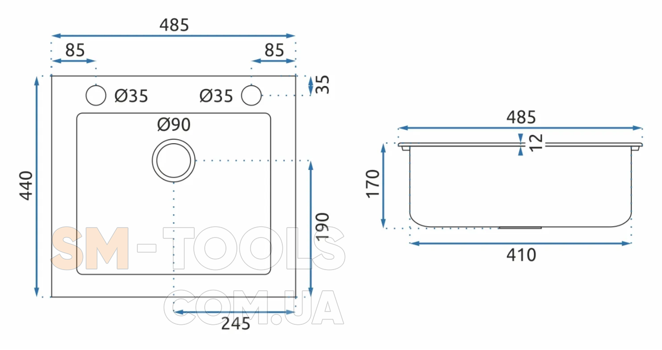 Ширина мойки (мм) : 485