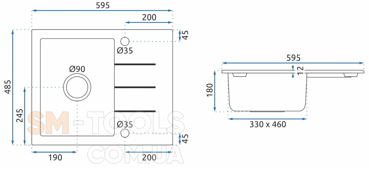 Ширина мойки (мм) : 595