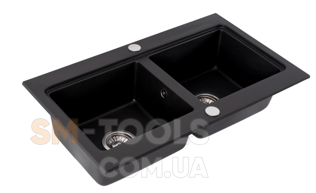 Гранітна кухонна мийка REA CADDY BLACK подвійна
