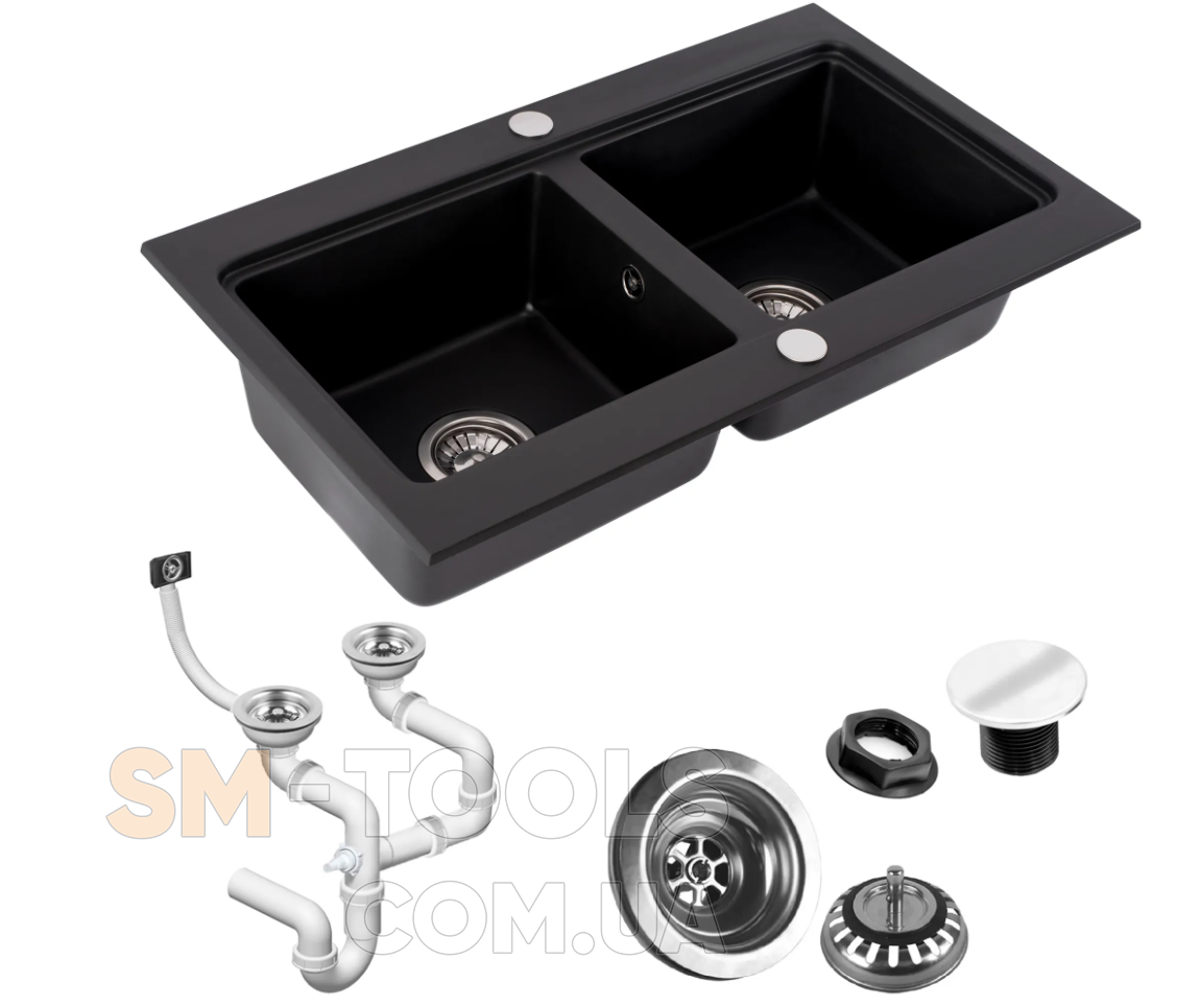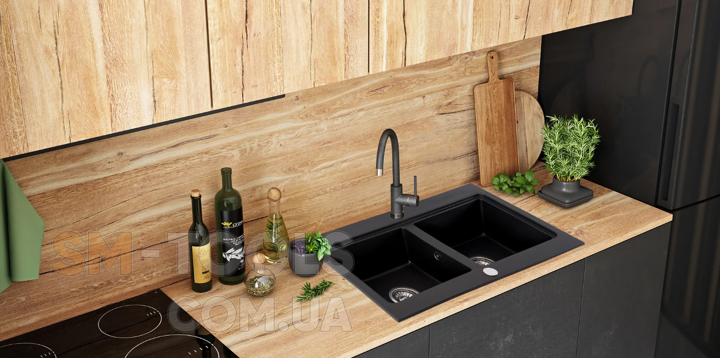 Опис Гранітна кухонна мийка REA CADDY BLACK подвійна: