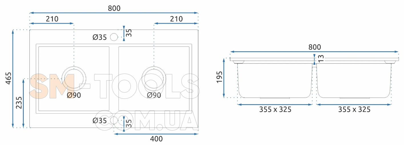 Ширина мойки (мм) : 800