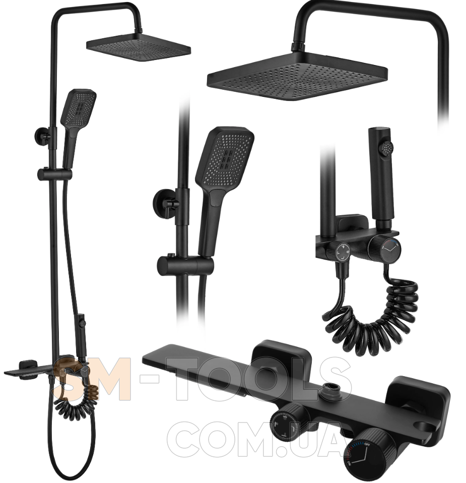 Характеристики Душовий гарнітур REA HELIX BLACK з виливом: