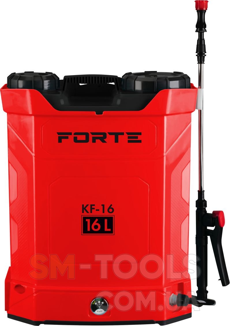 Обприскувач акумуляторний Forte KF-16 допоможе швидко обробити великі площі посівів від шкідників та захворювань. Підкачування рідини відбувається автоматично завдяки наявності акумулятора, заряду якого вистачає кілька годин безперебійної роботи. Обприскувач має гнучкий шланг та телескопічну трубку, що дає великий радіус розпилення. Тому обробка території чи саду не триватиме багато часу. Широка горловина бака є зручною для приготування розчину. Дана модель має ергономічний дизайн і оснащена широкими ременями на плечах, які сприяють рівномірному розподілу ваги.
