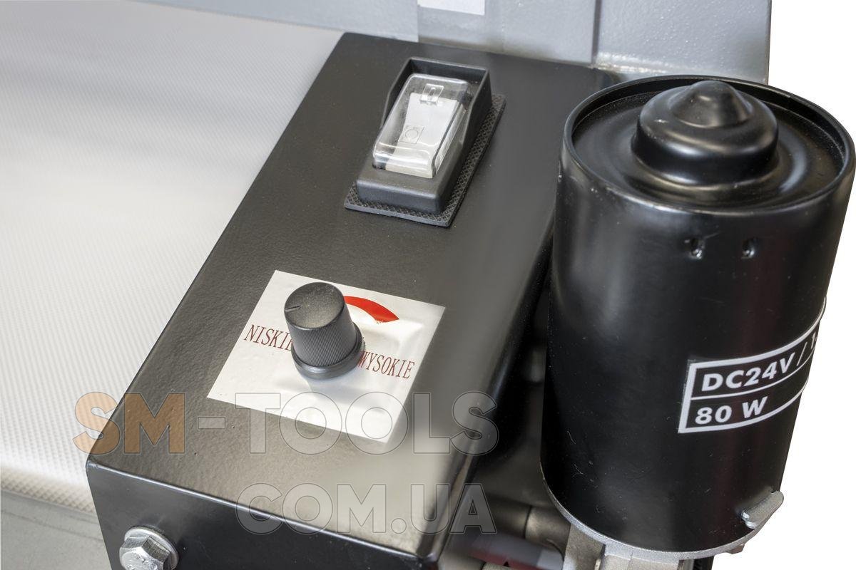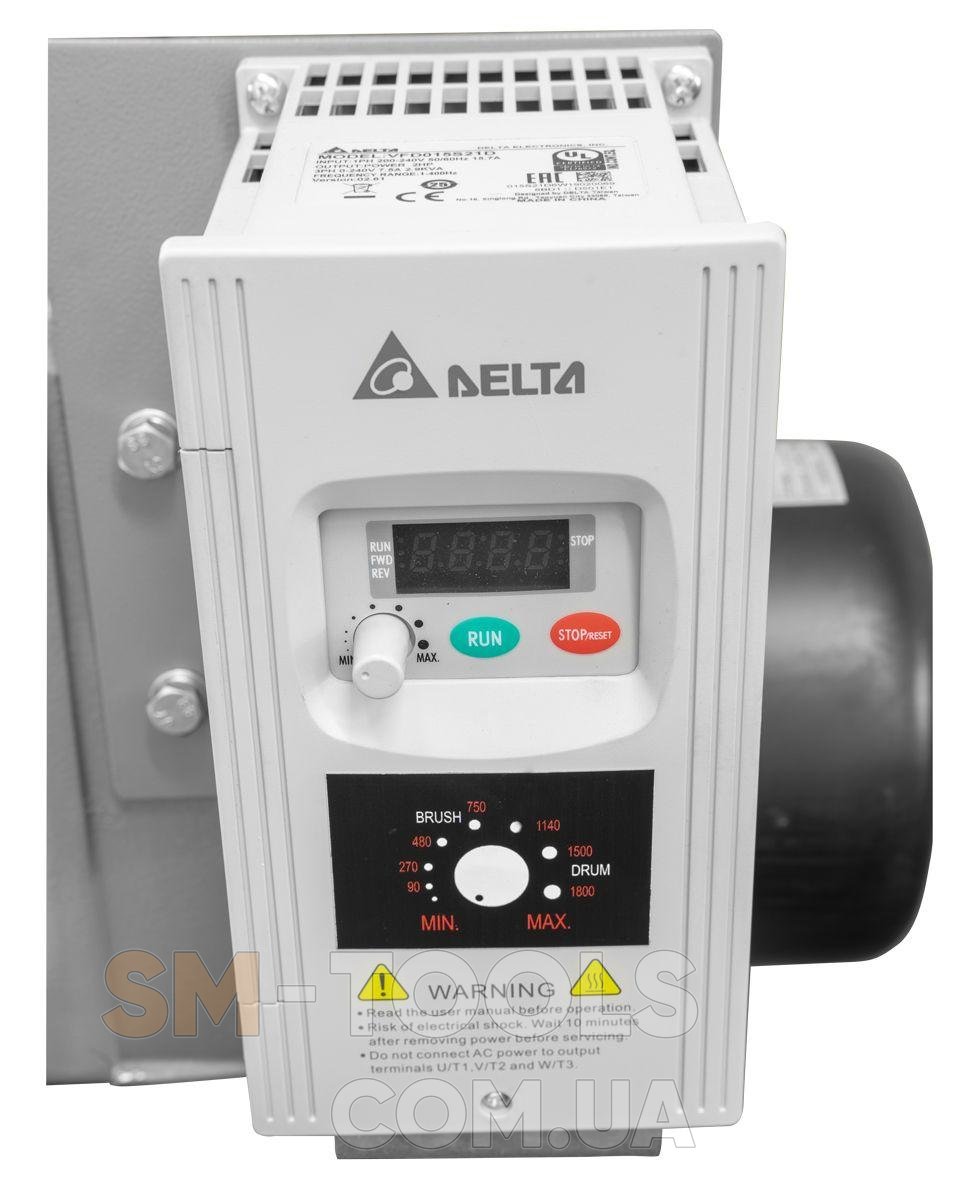 Шліфувально-браширувальний верстат з автоматичною подачею заготовки транспортною стрічкою. Верстат пройшов європейську сертифікацію СЕ. Основне призначення - шліфування та калібрування виробів із деревини. Жорстка конструкція з чавунною основою та кронштейном кріплення консолі забезпечує високу точність та повторюваність, що особливо важливо в умовах потокового виробництва. Шліфувальний вал закріплений з одного боку жорстко, а з іншого боку є знімний кронштейн, який можна при необхідності зняти і шліфувати широкі деталі в два проходи з поворотом. електроніки). Також ця модель відрізняється можливістю регулювання частоти обертання шліфувального валу. Центрування стрічки транспортера виробляється спеціальними гвинтами і звичайно потрібно тільки після заміни.