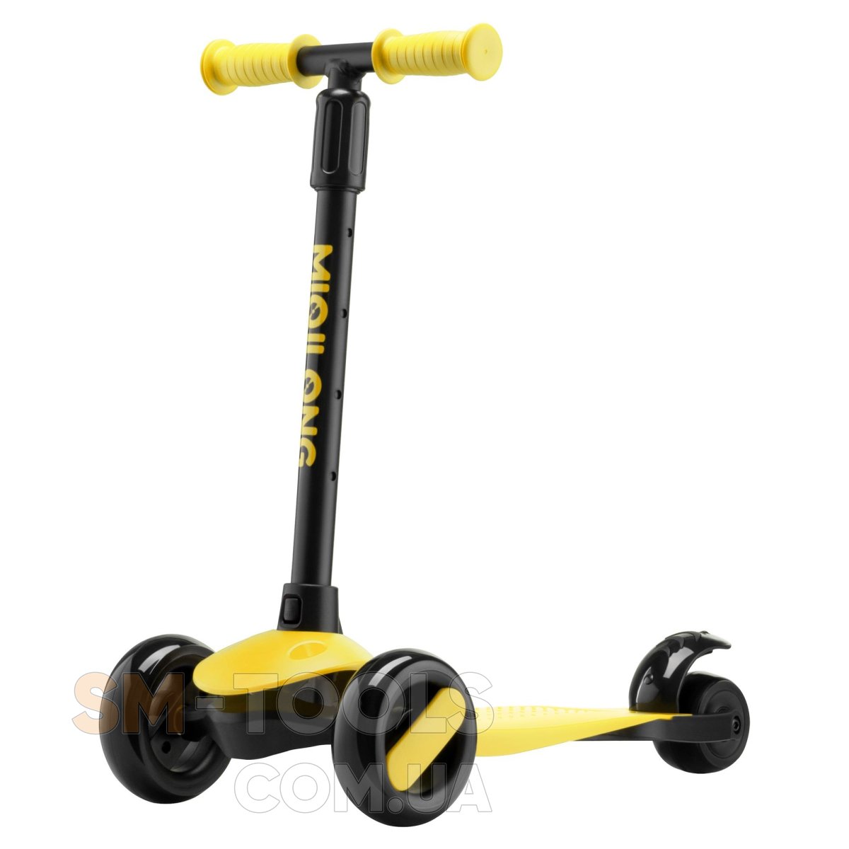 Miqilong Mine базова модель триколісного самокату для дітей. Модель Mine поєднує в собі кілька особливостей, що дозволяють дитині швидко і легко освоїти їзду на 3 колесах. Поворот керма самоката здійснюється не обертанням керма, а нахилом. Це безпечніше для найменших діток