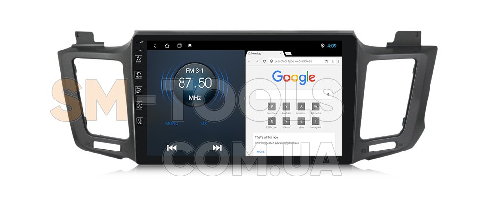 9" дюймів екран QLED 2.5D дозволом 1280x720.Ёмкостний морозостійкий сенсор, мультитач до 5 торкань (наприклад масштабування і обертання карти навігації 2-ма пальцями), чуйне і легкий дотик - так само, як на сучасних смартфонах і планшетах. Екран дозволяє відтворювати відео в дуже хорошій якості, яскраві, соковиті кольори. Великі кути огляду екрану дозволяють насолоджуватися переглядом з будь-якого сидіння вашого автомобіля. Передбачено поділ екрану на дві частини, що дає можливість одночасно використовувати два додатки, наприклад, навігація і радіо.