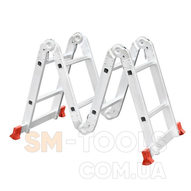 С помощью различных положений лестницы вы сможете добраться в любое, на первый взгляд не доступное, место и при этом чувствовать себя в безопасности. Данная лестница при ее максимальной высоте 2.5 метров имеет вес всего 9,7 кг. Транспортировка и хранение лестницы не вызовет у вас затруднений – она с легкостью трансформируется и поместиться в багажнике вашего автомобиля или дома в кладовке. Функциональность данных лестниц может быть расширена еще больше с помощью дополнительной ступени-полки с грузоподъемностью до 150 кг и платформы, по которой вы сможете свободно перемещаться во время выполнения работ.