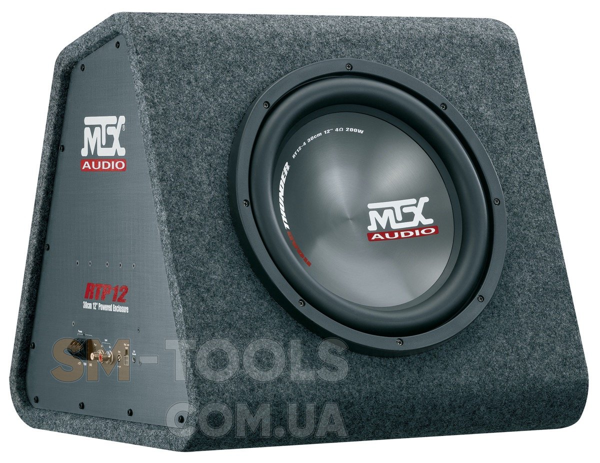 Активний сабвуфер MTX RTP12 з підсилювачем (середньоквадратичне значення 220 Вт) сяє щедрим та пробивним відтворенням звуку. З ультраефективним підсилювачем класу D та сабвуфером з широким ходом 30 см він перенесе вас прямо у вітальню для масажу спини. Коробка, 18-мм МДФ та фазоінверторне навантаження роблять його грізною зброєю для веселощів.Загальні характеристики
