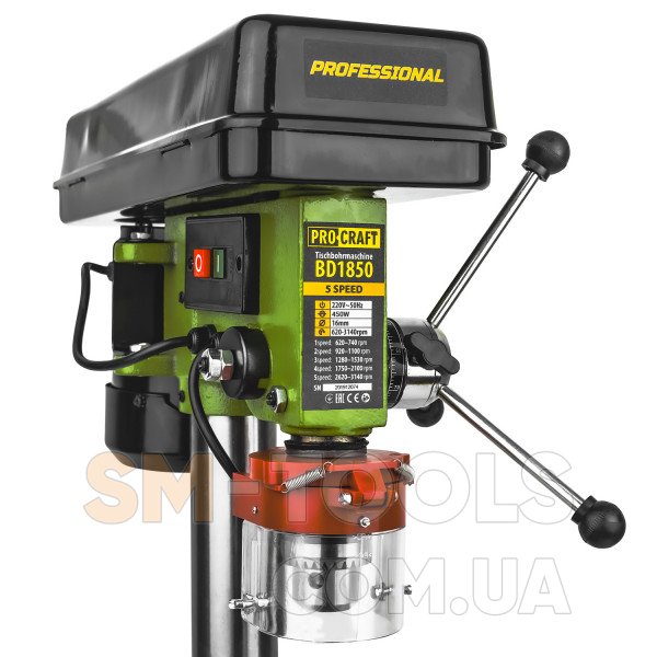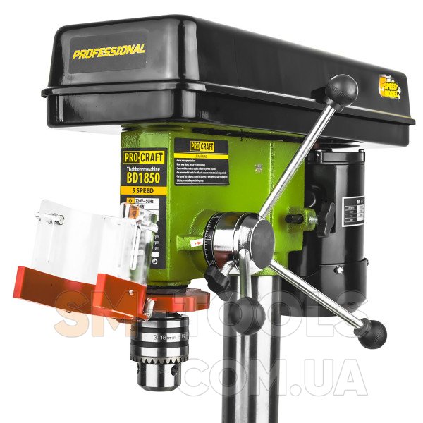 Свердлильний верстат Procraft BD1850 - це професійне обладнання, що дозволяє свердлити наскрізні, глухі отвори, нарізати різьбу в великих кількостях. У верстаті встановлений мотор на 1850 Ватт потужності, що задовольняє всі потреби домашньої майстерні.n