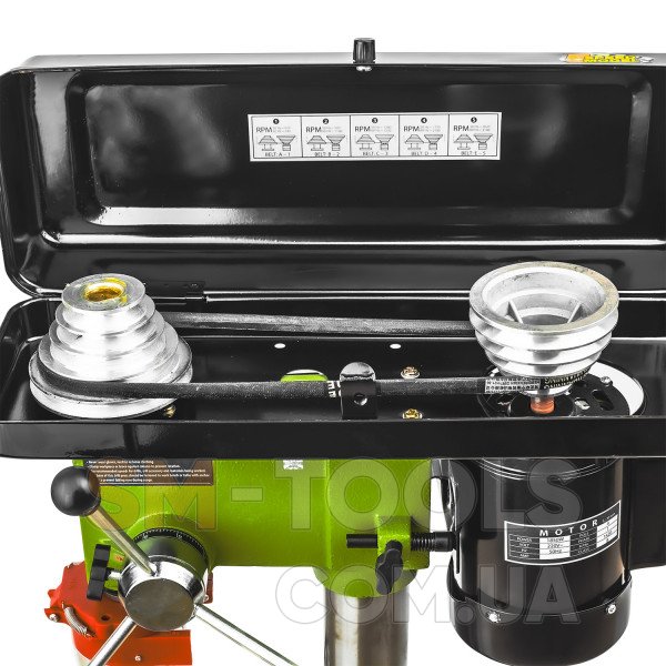 Основною відмінністю є потужний електродвигун, а також коробка передач на 5 швидкостей, яка дозволяє змінювати швидкість в широкому діапазоні 620-3140 об / хв. Потужний двигун дозволяє оперативно обробляти значну кількість деталей. Щоб регулювати швидкість, досить переставити ремінь приводу на шків відповідного діаметру.
