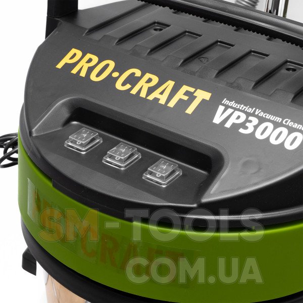 Промисловий пилосос Procraft VP3000 ? це потужний промисловий пилосос, призначений для прибирання у важких умовах. Цей пилосос підходить для широкого спектра застосувань, включно з виробничими підприємствами, заводами та складами. Потужний двигун і великий об'єм бака роблять пилосос ідеальним для швидкого та ефективного прибирання великих площ.