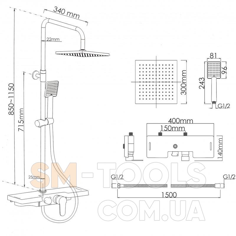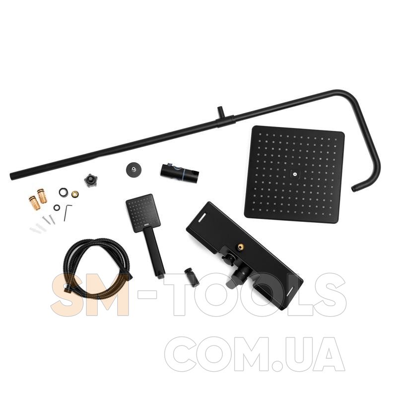 Сучасний, унікальний дизайн та виконання з найякісніших, неагресивних матеріалів забезпечують довговічність та надійність нашої продукції на довгі роки. У комплект входить механічний змішувач для душу із змішувачем температури, регулюванням та перемикачем струменя води між тропічним душем, ручним душем та виливом. Крім того, панель обладнана широкою полицею для зручного приладдя, до якої кріпляться кран і вилив. Поверхня полиці матова. Керамічна головка батареї (35 мм) гарантує довговічність та міцність. В комплект входить стильний тропічний душ 30 x 30 см та матова чорна насадка для душу – обидва із сучасною системою ANTI-CALC. Дизайн набору відповідає останнім тенденціям - він виглядає дуже елегантно і чудово вписується в сучасну ванну кімнату.Країна виробник : ПольщаСпосіб монтажу : зовнішній монтажВисота набору (см) : 85-115Матеріал : нержавіюча сталь, латунь, abs пластикКолір : чорний