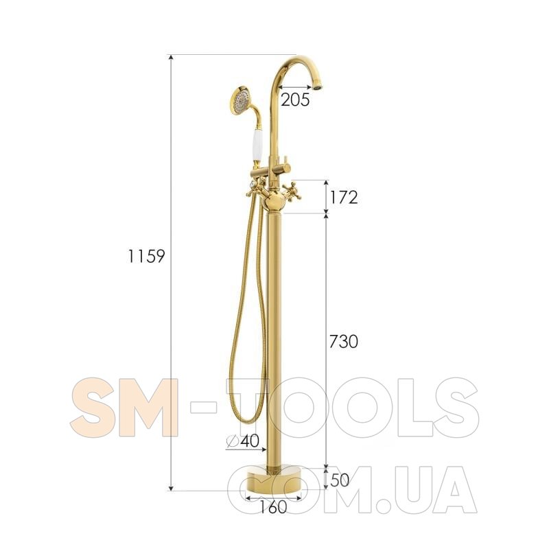 Опис Змішувач для ванни Yoka VIENNA GOLD золотий підлоговий