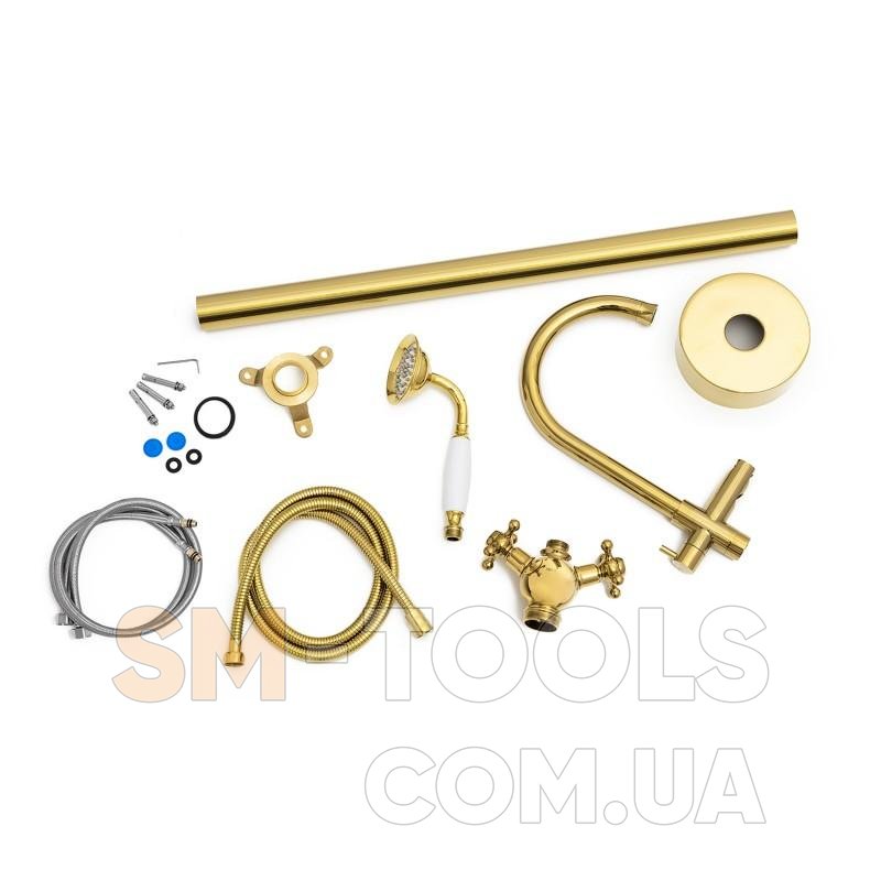 Новинка 2021 року. Окремий механічний змішувач для ванни та душу з жорстким поворотним виливом та перемикачем. Змішувач двоважільний - заглушки у стилі ретро з написами "HOT" та "COLD". Змішувач оснащений ручним душем із тропічним душем у формі ковпачка. І керамічна головка діаметром 35 мм, і аератор заощаджують до 40% води. В комплект входять 2 високоякісні плетені шланги з нержавіючої сталі довжиною 80 см зі стандартним з'єднанням 1/2 дюйма, 1 душовий шланг в обплетенні 150 см F 1/2 і набір аксесуарів для встановлення змішувача. Дизайн змішувача натхненний 50-ми, 60-ми та 70-ми роками - він ідеально вписується у ванну кімнату з елементами минулої епохи. Унікальний дизайн і якість виготовлення з неагресивних матеріалів найвищої якості забезпечують довговічність і надійність нашої продукції на довгі роки. >Країна виробник : ПольщаПризначення : для ванни та душуСпосіб монтажу : підлоговийКолір : золотоМатеріал : латунь, АБС-пластикВигляд змішувача : одноважільнийВисота (см) : 115,9Гарантія : 2 рокиДовжина виливу (см) : 20,5Довжина шланга (см) : 150Діаметр з'єднання : 1/2 дюйма Висота: від 30 см і вище Довжина виливу: від 20 см Максимальна температура: 90°С