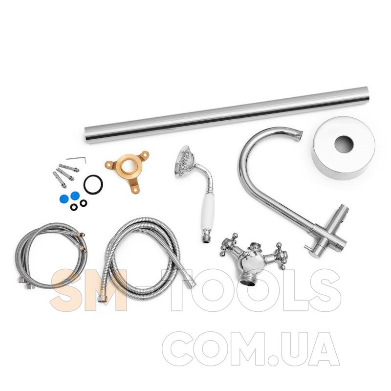 Новинка 2021 року. Окремий механічний змішувач для ванни та душу з жорстким поворотним виливом та перемикачем. Змішувач двоважільний - заглушки у стилі ретро з написами "HOT" та "COLD". Змішувач оснащений ручним душем із тропічним душем у формі ковпачка. І керамічна головка діаметром 35 мм, і аератор заощаджують до 40% води. В комплект входять 2 високоякісні плетені шланги з нержавіючої сталі довжиною 80 см зі стандартним з'єднанням 1/2 дюйма, 1 душовий шланг в обплетенні 150 см F 1/2 і набір аксесуарів для встановлення змішувача. Дизайн змішувача натхненний 50-ми, 60-ми та 70-ми роками - він ідеально вписується у ванну кімнату з елементами минулої епохи. Унікальний дизайн і якість виготовлення з неагресивних матеріалів найвищої якості забезпечують довговічність і надійність нашої продукції на довгі роки. >Країна виробник : ПольщаПризначення : для ванни та душуСпосіб монтажу : підлоговийКолір : хромМатеріал : латунь, хромована сталь, АБС-пластикВигляд змішувача : одноважільнийВисота (см) : 115,9Гарантія : 2 рокиДовжина виливу (см) : 20,5Довжина шланга (см) : 150 Діаметр з'єднання: 1/2 дюйма Висота: від 30 см і вище Довжина виливу: від 20 см Максимальна температура: 90°С