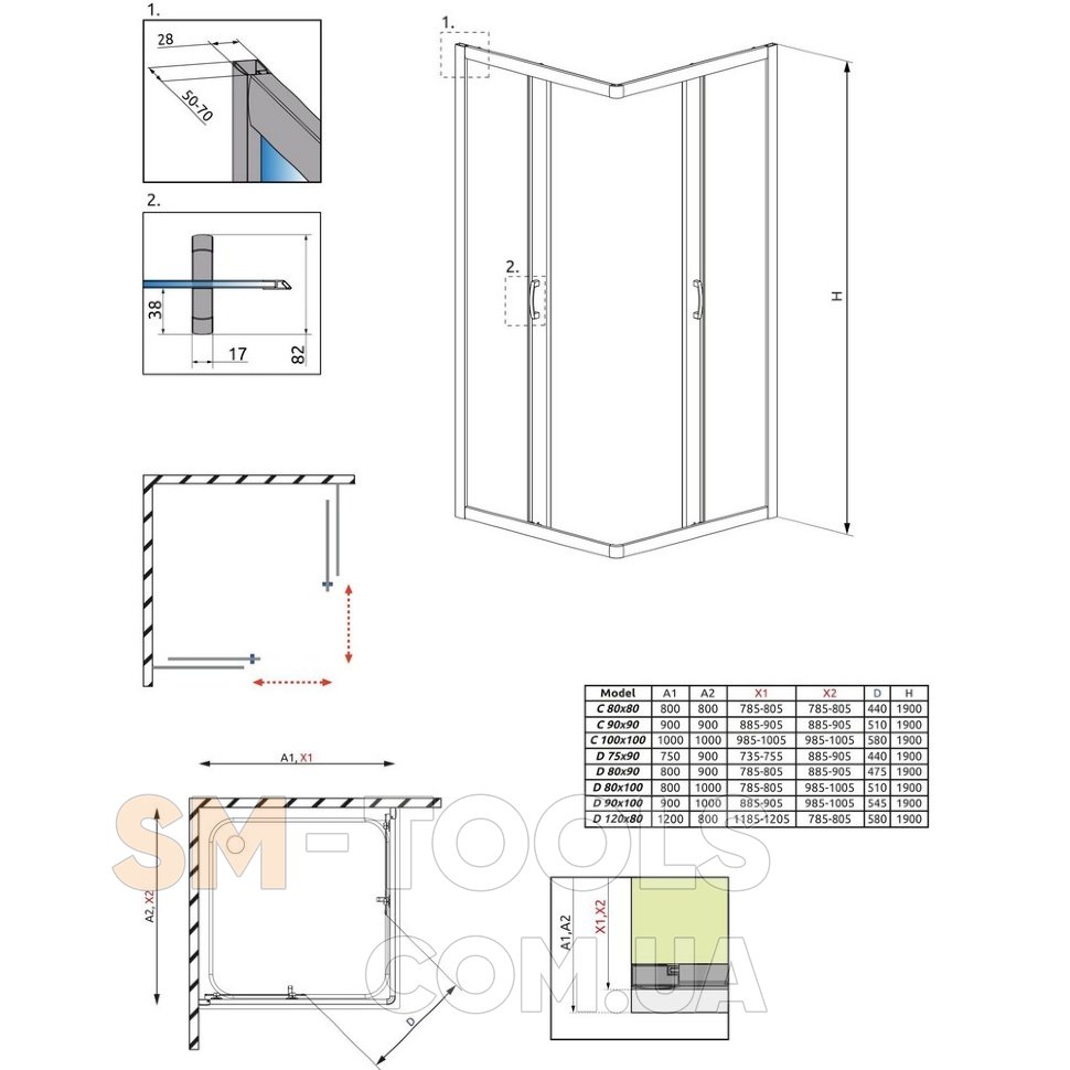 Опис душова кабіна Radaway Premium Plus З 90x90 безпечне скло, прозоре (30453-01-01)