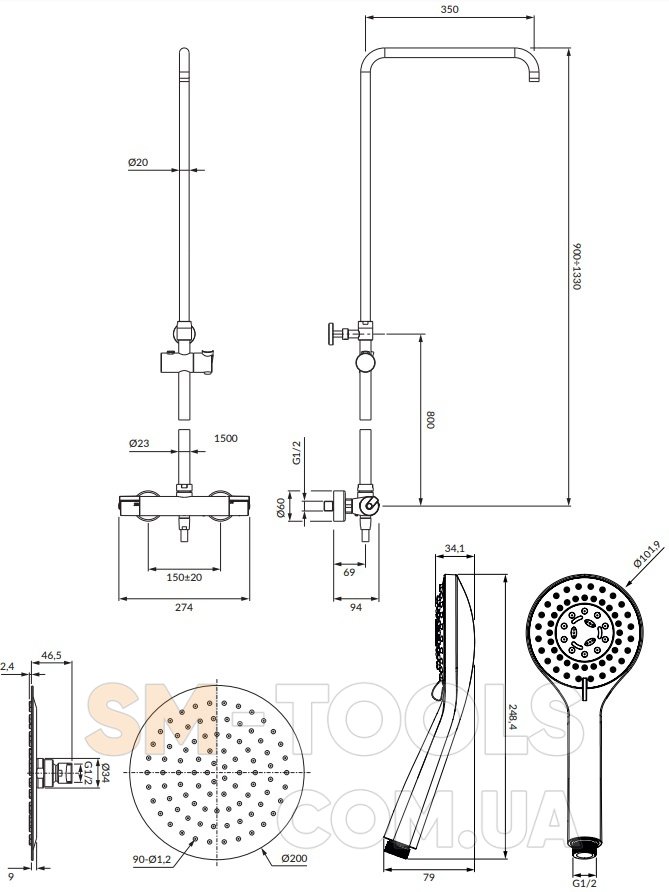 Опис душова система з термостатом Omnires Y chrome (Y1244XOCR)