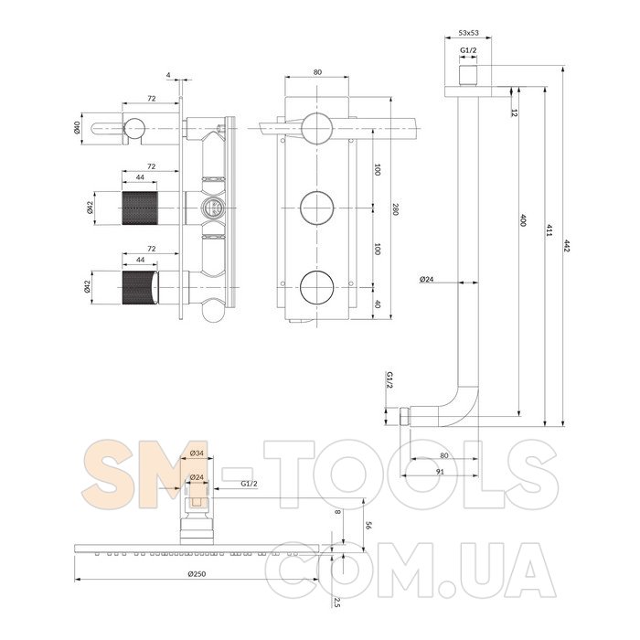душовий комплект прихованого монтажу з термостатом Omnires Contour chrome (SYSCT11CR)