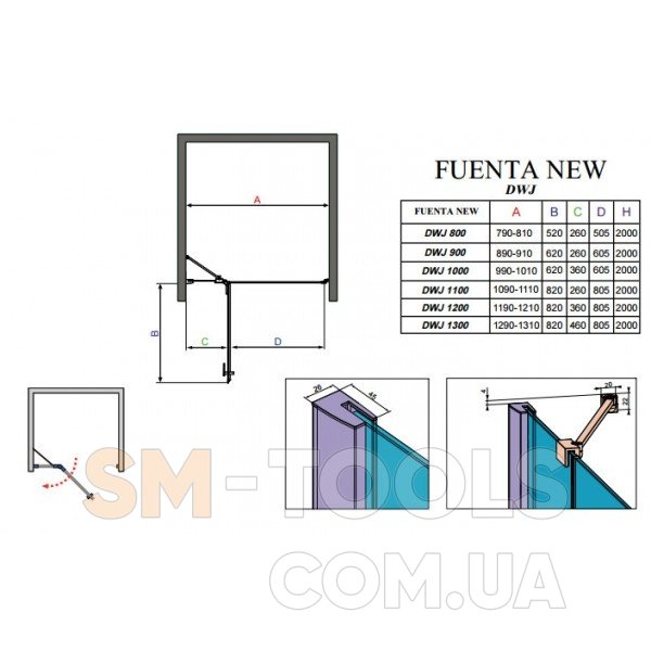 Опис душові двері Radaway Fuenta New DWJ 100x200 скло прозоре праве (384014-01-01R)
