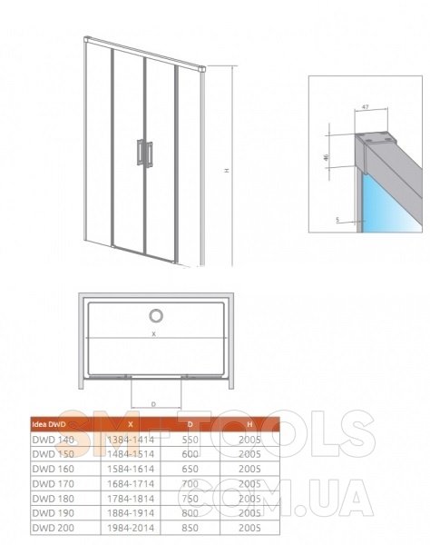 Опис душові двері Radaway Idea DWD 200x200,5 скло прозоре (387120-01-01)
