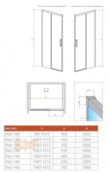 Опис душові двері Radaway Idea DWJ 100x200,5 скло прозоре права (387014-01-01R)