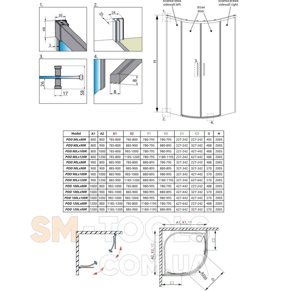 Опис душові стінки Radaway Idea PDD 100x100 безпечне скло, прозоре (387142-01-01)