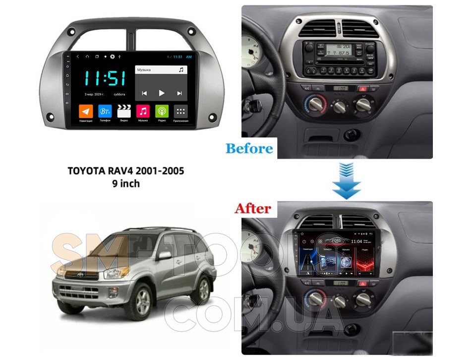 Опис Штатна магнітола FORS.auto M200 для Toyota RAV4 (9 inch) 2001-2005