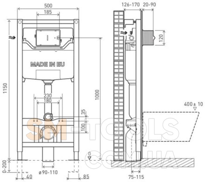 - 1) Система інсталяції для підвісного унітазу Volle Master Neo без кнопки змиву хром