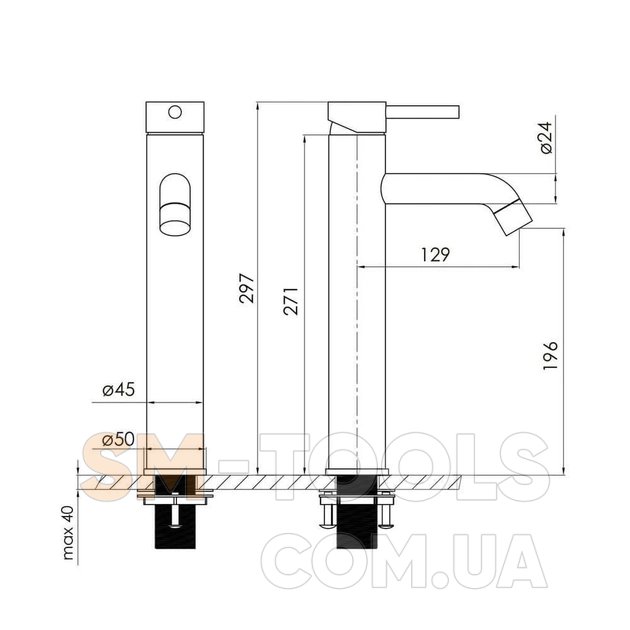 Висота змішувача, мм 297