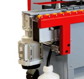 - Складається з двох пресувальних роликів, що забезпечують, надійну фіксацію кромочного матеріалу на торець заготовки.