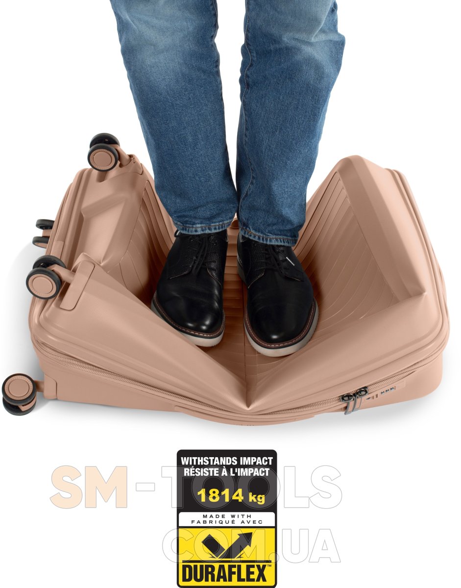- Система розширення на блискавці, яка відповідає кольору валізи, дозволяє збільшити об'єм на 20%.