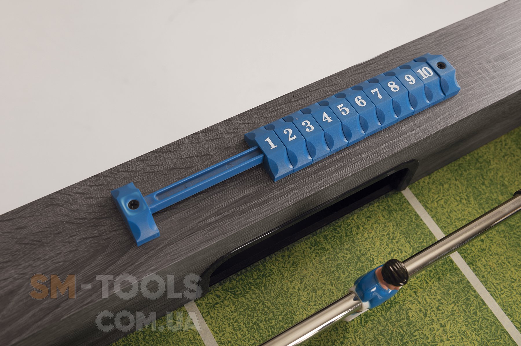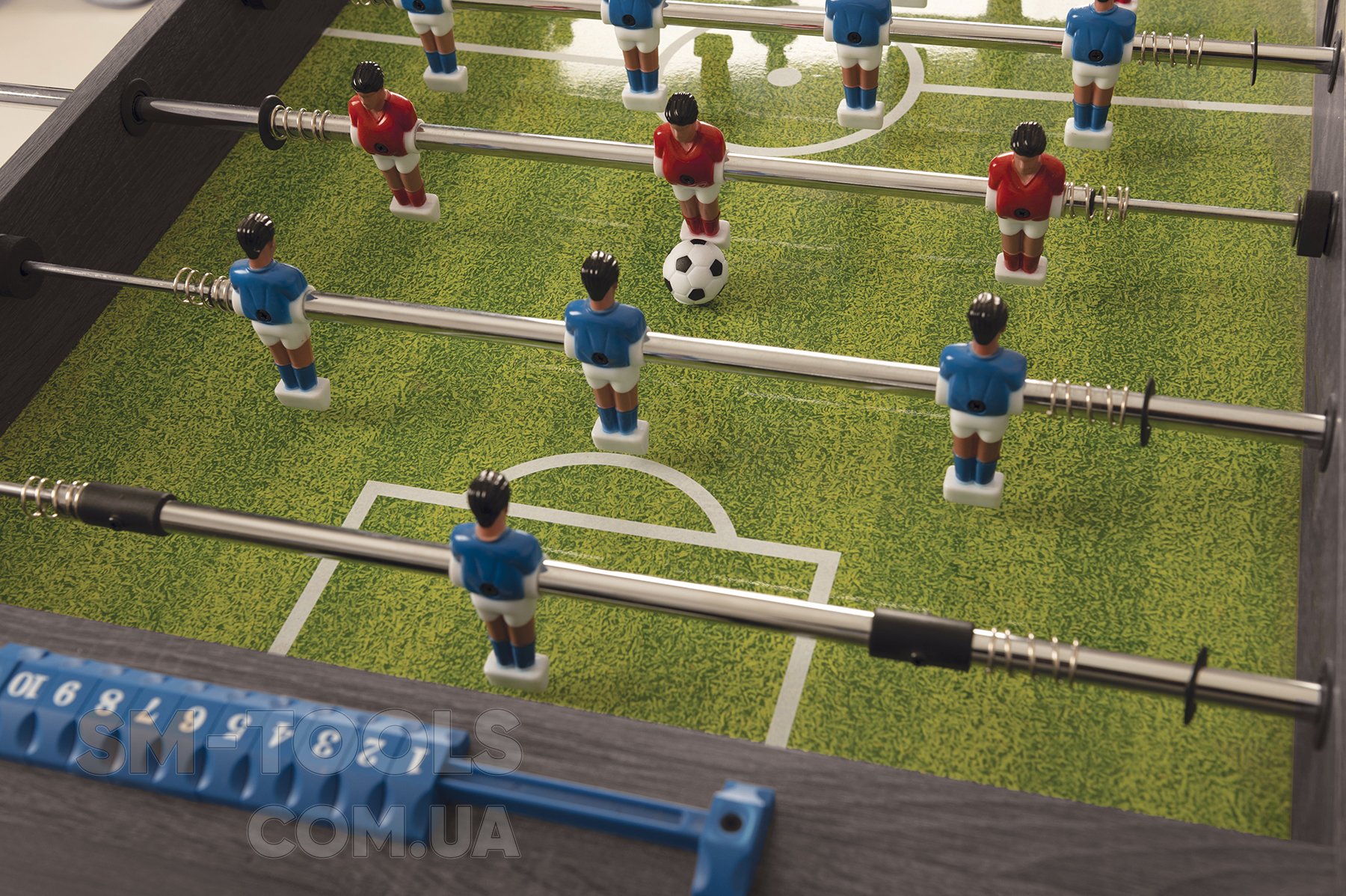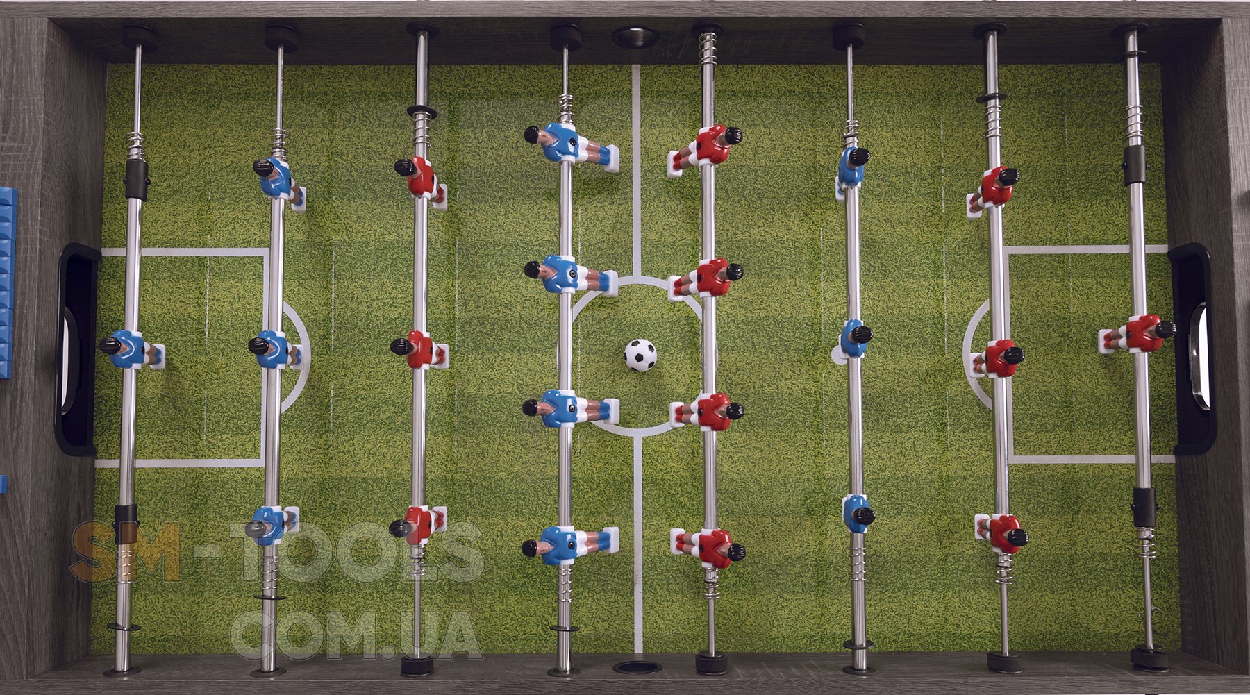 - Фігурки гравців червоного та синього кольору закріплені на штангах індивідуально.