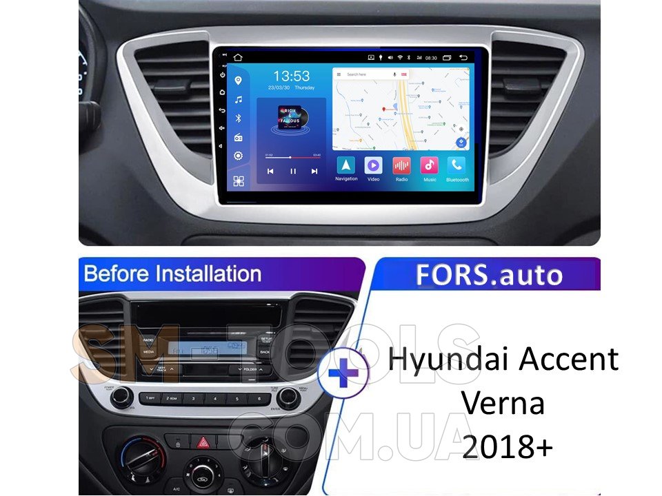 Штатна магнітола FORS.auto М300 для Hyundai Accent/Verna (3+32Gb, 9") 2018+