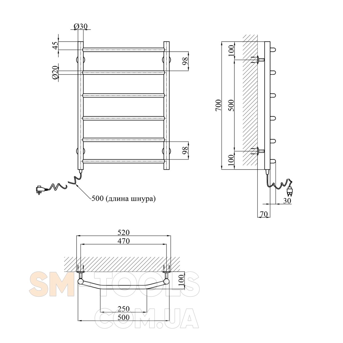 Опис Сушарка для рушників електрична Kroner Трапеція ДТ09EL 700х500/5 EL