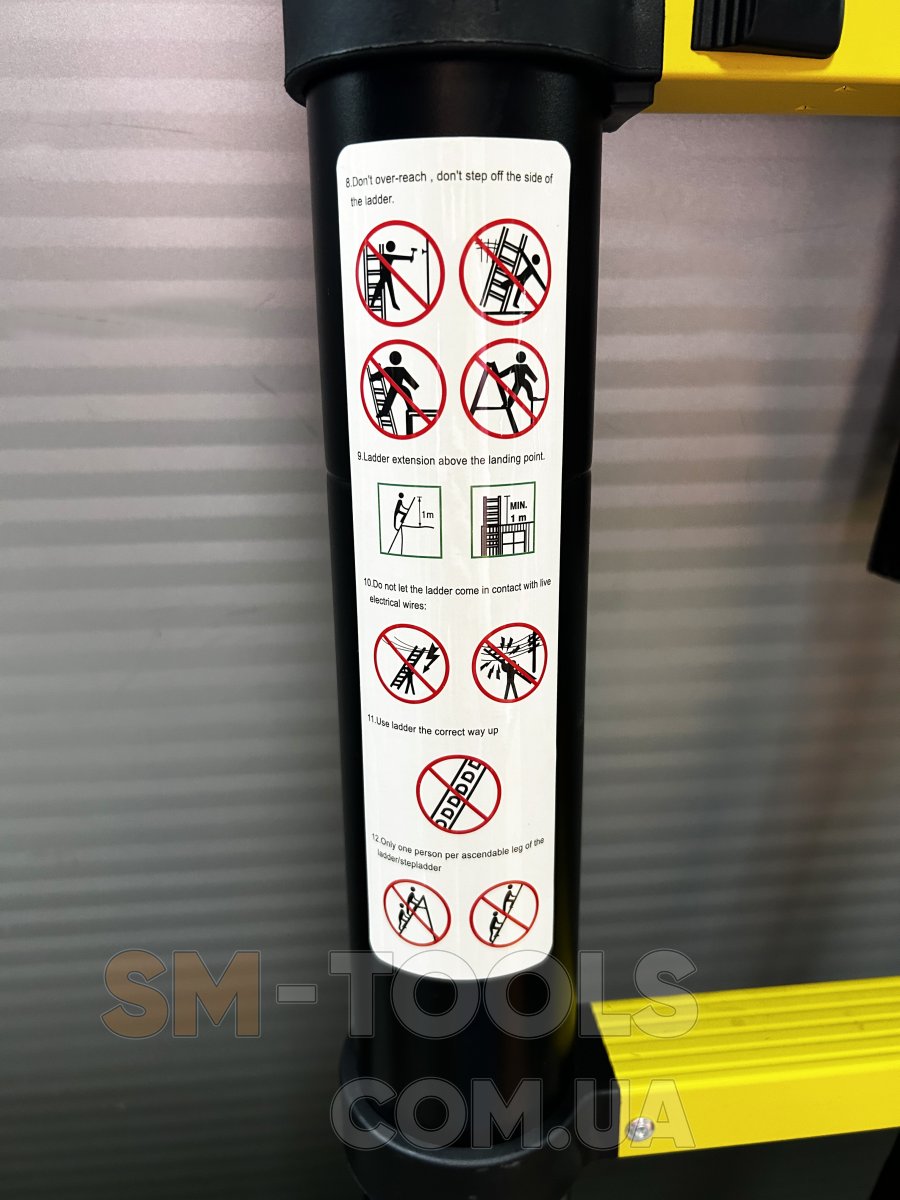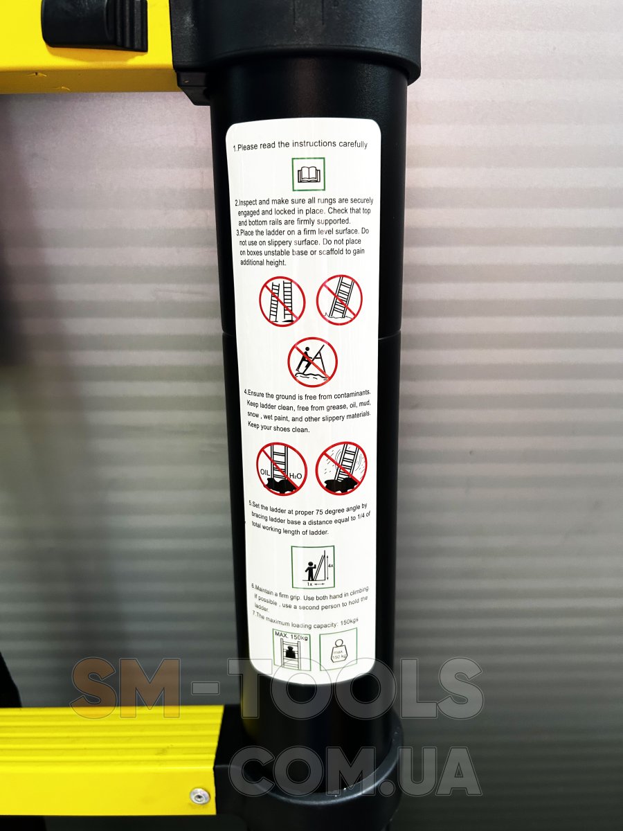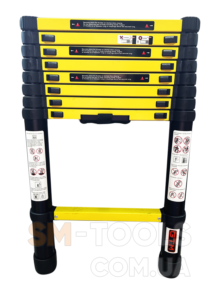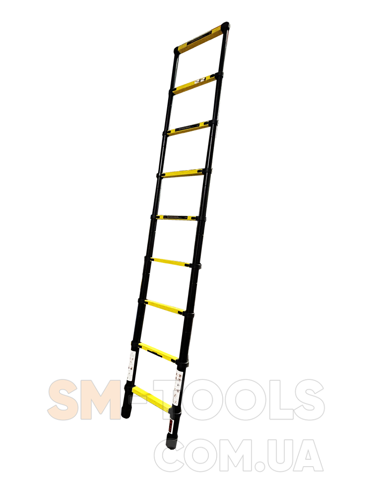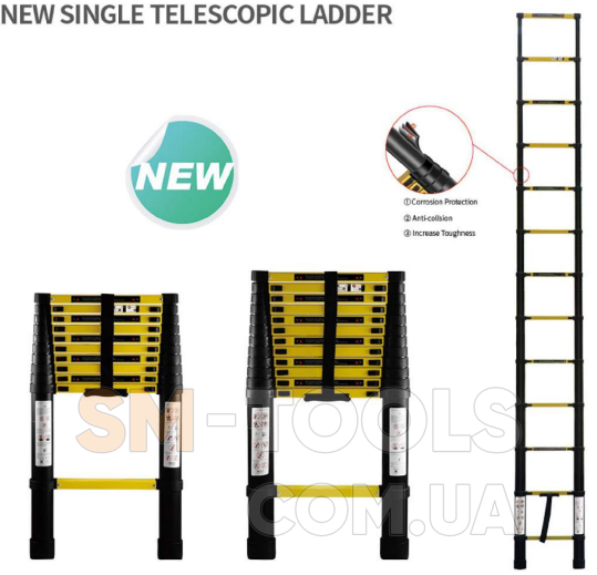 Телескопічна драбина з анодованого алюмінію. Завдяки своїй конструкції є оптимальним рішення для використання на будівництвах, виробнитвах та звичайних побутових господарствах.