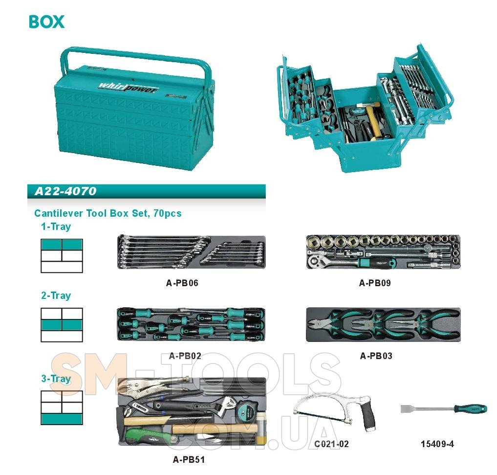 Набір інструменту Whirlpower A22-4070 (70 предметів) мет.ящик