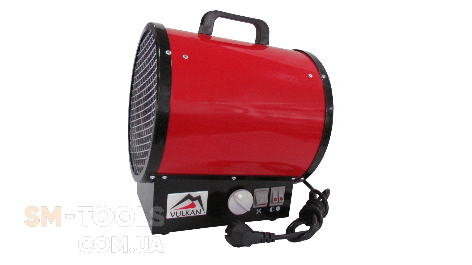 Теплова електрична гармата VULKAN 3000 (Е) ТП - пересувний електричний обігрівач потужністю 3,0 кВт з вбудованим вентилятором для швидкого обігріву великих приміщень до 300 м3. Сучасний дизайн, низький рівень шуму та безрамна конструкція дозволяє використовувати агрегат для обігріву офісних приміщень. Циліндрична форма корпусу забезпечує сконцентрований спрямований потік теплого повітря на велику відстань. Вбудований термостат дозволяє підтримувати температуру повітря в приміщенні від +5°С до + 40°С.Збільшення температури повітря, при номінальній потужності до +32 °С Міцний металевий корпус з високоякісним полімерним покриттям, нагрівальні елементи, виконані з нержавіючої сталі, забезпечують високу корозійну стійкість і дають можливість використовувати агрегати в умовах будівельних майданчиків, господарських і складських приміщень, майстерень, цехів, теплиць та інших будівель. Тепловідбивний екран з оцинкованої сталі дозволяє зменшити теплові втрати на не продуктивний нагрів корпусу і збільшити тепловіддачу агрегатів.