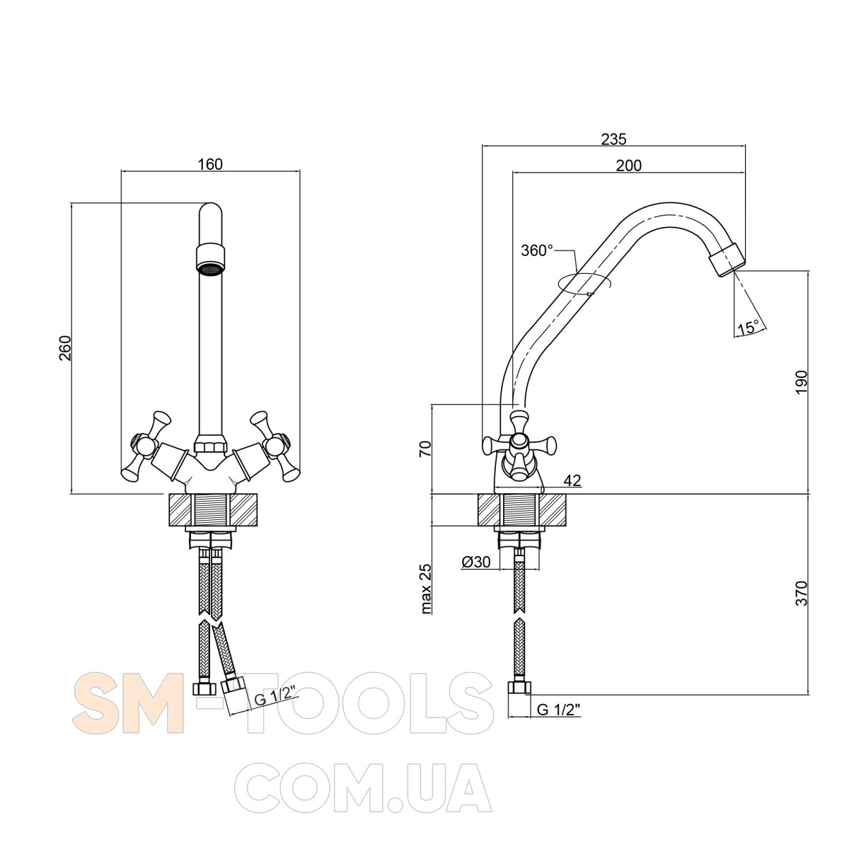Змішувач для кухні Lidz (CRM) 75 21 272F-1 виготовлений з цинку. Завдяки глянсовому хромованому покриттю має оригінальний зовнішній вигляд. Виконаний в класичному стилі, з вентильними ручками для перемикання потоку холодної та гарячої води.Характеристики Змішувач для кухні Lidz Lamb 271F двохвентильний LDLAM271FCRM21889 Chrome