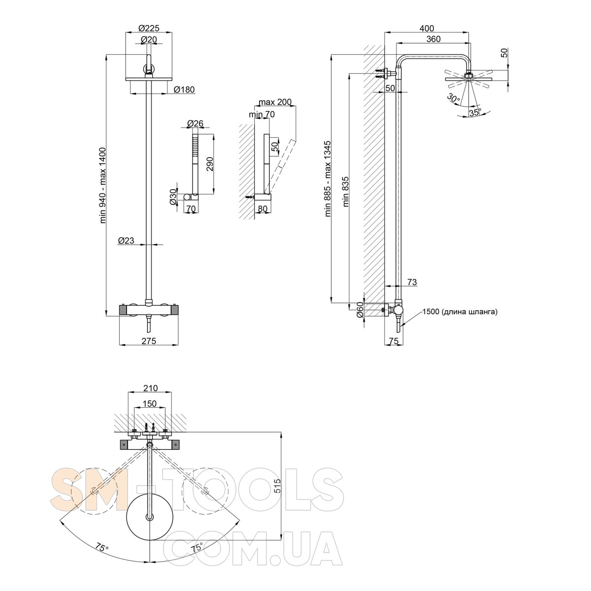 Артикул : QTBRN5769103ONKБренд : QtapВага брутто 1, кг : 6,1Вага нетто, кг : 4Вид монтажу : НастіннийВисота душової стойки, мм : 885-1355Габарити виробу (ВхШхД), мм : 1400x275x390Габарити упаковки 1, мм : 390x820x130Гарантія : 10 роківДовжина кронштейна для верхнього душу, мм : 360Довжина шланга, мм : 1500Діаметр лійки, мм : Ручний душ 32х50. Верхній душ: 225Зверніть увагу : Нами докладено всіх зусиль для подання точної та правдивої інформації в описі товару. Проте джерелом інформації є виробник. Він залишає за собою право вносити зміни до конструкції виробів та комплектації, які не погіршують якість, без попереднього повідомлення. Тому граничні відхилення від розмірів можуть змінюватись у межах ± 2%.Колір : ЧорнийКомплектація : Змішувач, кронштейн для верхнього душу, лійка для верхнього душу, кронштейн для ручного душу, лійка для ручного душу, душовий шланг, душова стійка, кріплення.Країна реєстрації бренду : ЧехіяКраїна-виробник : ЧехіяКількість вантажних місць : 1Кількість режимів перемикання лійки : Ручний душ: 2. Верхній душ: 1Матеріал : Латунь / ABS пластик / Нержавіюча стальМеханізм змішування : Картридж термостатичнийМодель : 5769103ONKПоверхня : МатоваРобочий тиск, bar : До 3Серія : BrnoСистема запобігання скручування шланга : ЄТип виробу : Душова системаТип керування : ВентильнийФорма лейки : Ручний душ: прямокутна. Верхній душ: кругла