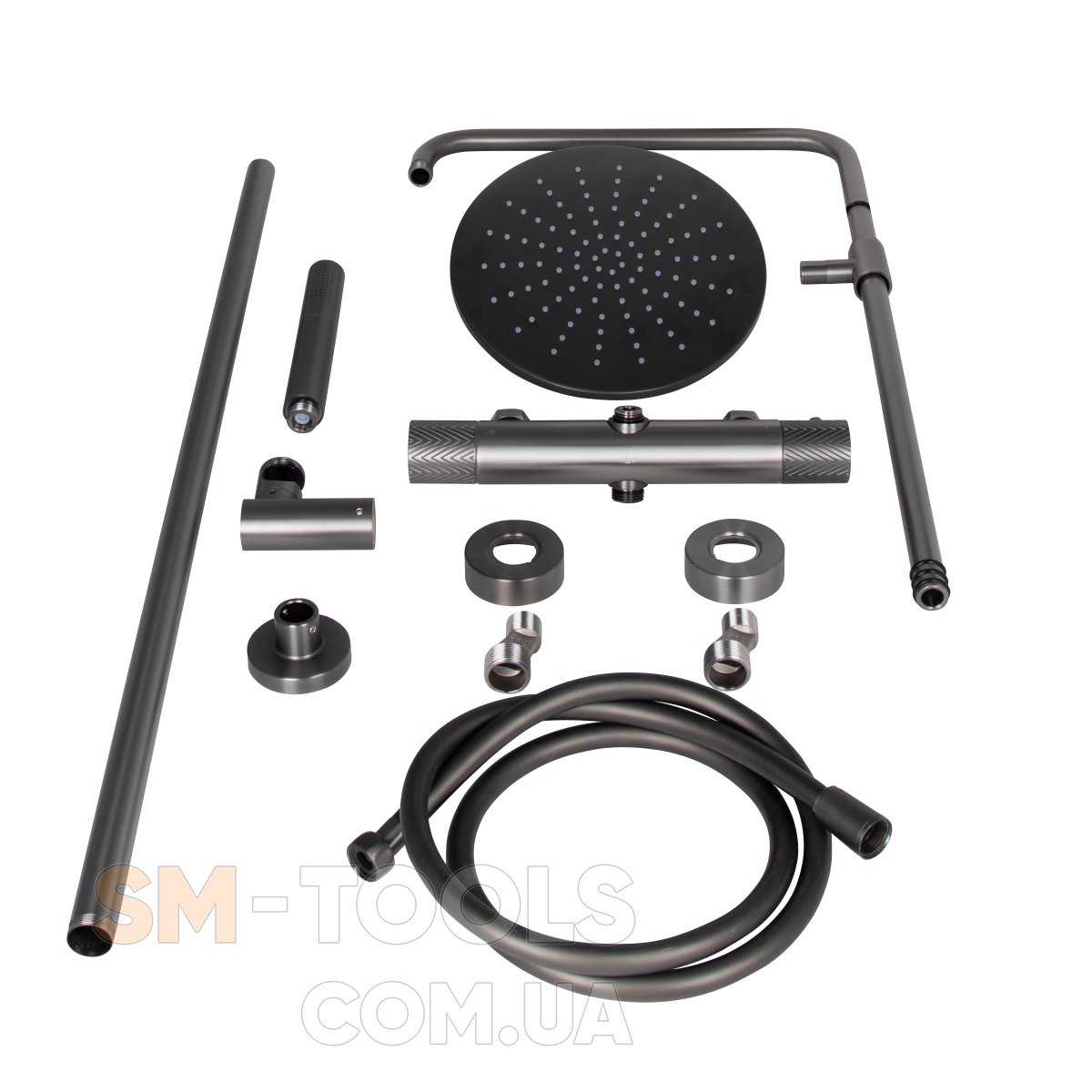 Душова система універсальна Qtap Brno термостатична на два споживача QTBRN5769103ONK Gunmetal Black PVD