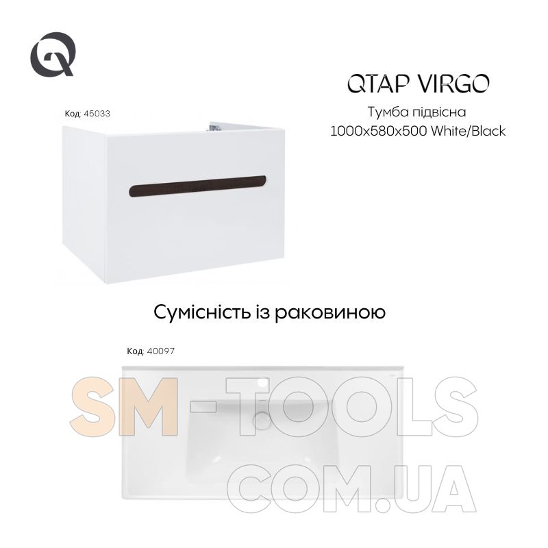 Тумба підвісна Qtap Virgo 1000х580х500 White/Black QT1874TPА1001WB
