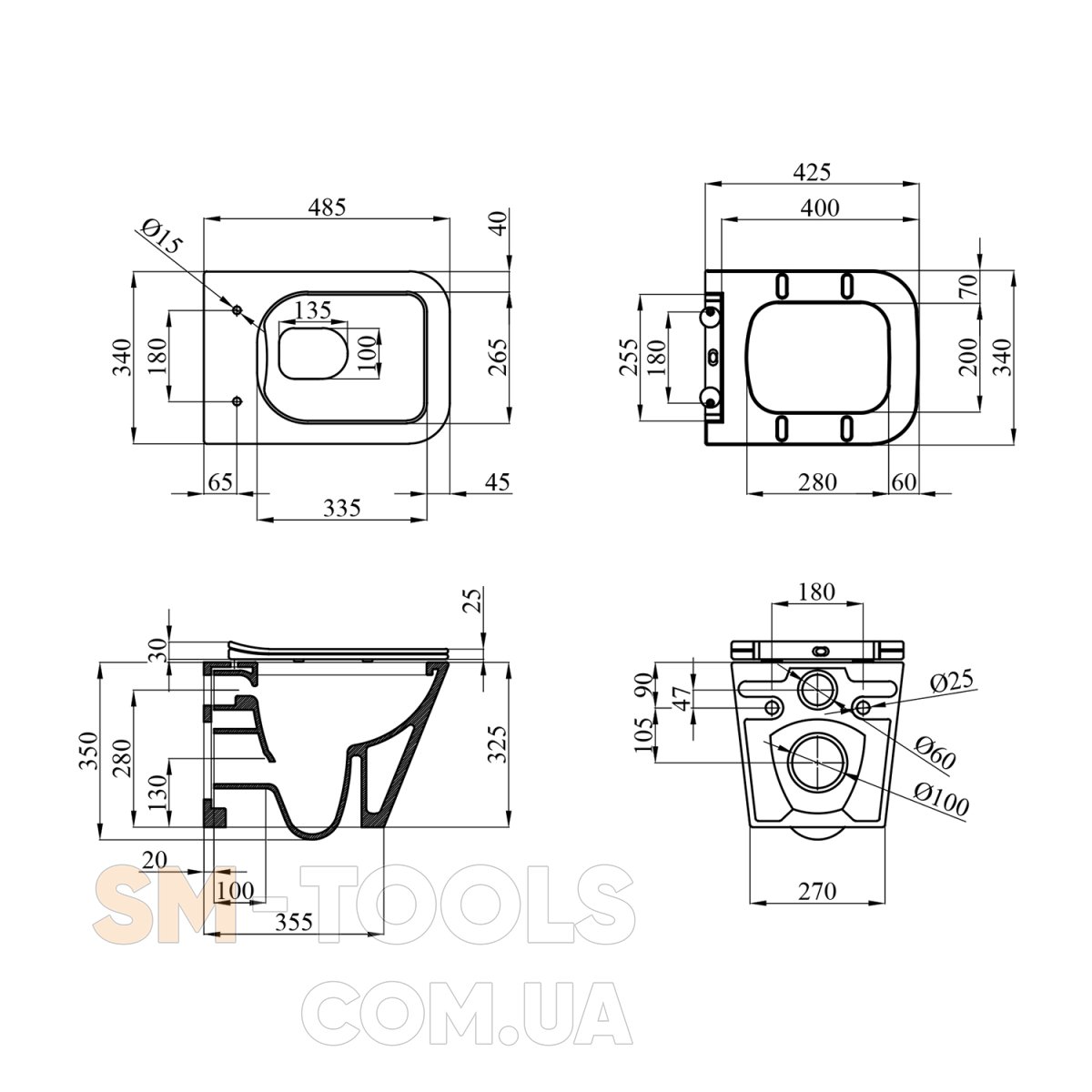 Виготовлений з непористого фаянсу, унітаз стає стійким до забруднення та неприємних запахів, що робить його легким у догляді. Габарити відповідають кресленню з можливими відхиленнями ±2%. Можливі нерівності поверхні зумовлені технологією сушіння.