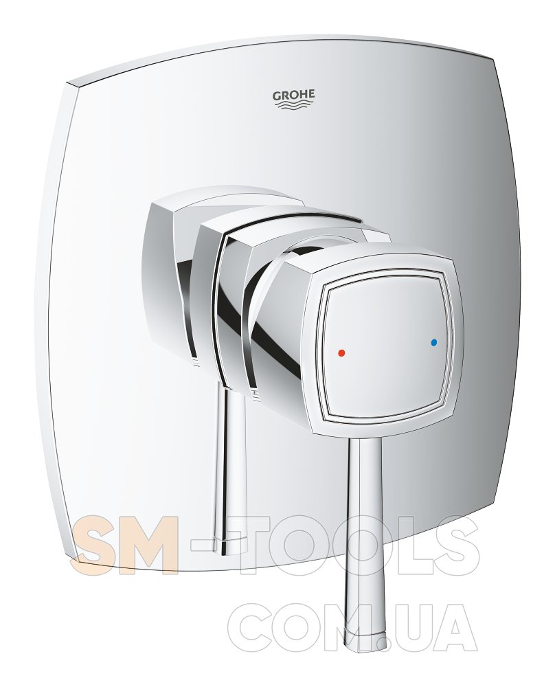 комплект верхньої монтажної частини для<br/>вбудованої частини GROHE Rapido SmartBox 35 600/35 604<br/><strong>GROHE SilkMove</strong> 46 мм керамічний картридж<br/><strong>GROHE Long-Life Shine</strong> хромована поверхня<br/>із настінними розетками <strong>GROHE FastFixation </strong>(приховані ексцентрики, ущільнювачі, кріплення)<br/>металева настінна накладка, припасування в межах 6°<br/>металевий важіль<br/>пропускна здатність виходів: <br />вихід B або C = 30 л/хв<br/>без вбудованої частини<br/>Бренд : GroheКолекція : GranderaКількість виходів : 1 вихідНаявність термостата : Без термостатаПризначення : Для душуТип управління : ВажільнийФорма накладки : Квадратна, КруглаВага упаковки : 1.66 кгДовжина упаковки : 200 ммШирина упаковки : 180 ммВисота упаковки : 243 ммEAN : 4005176465802Країна виробник : Німеччина