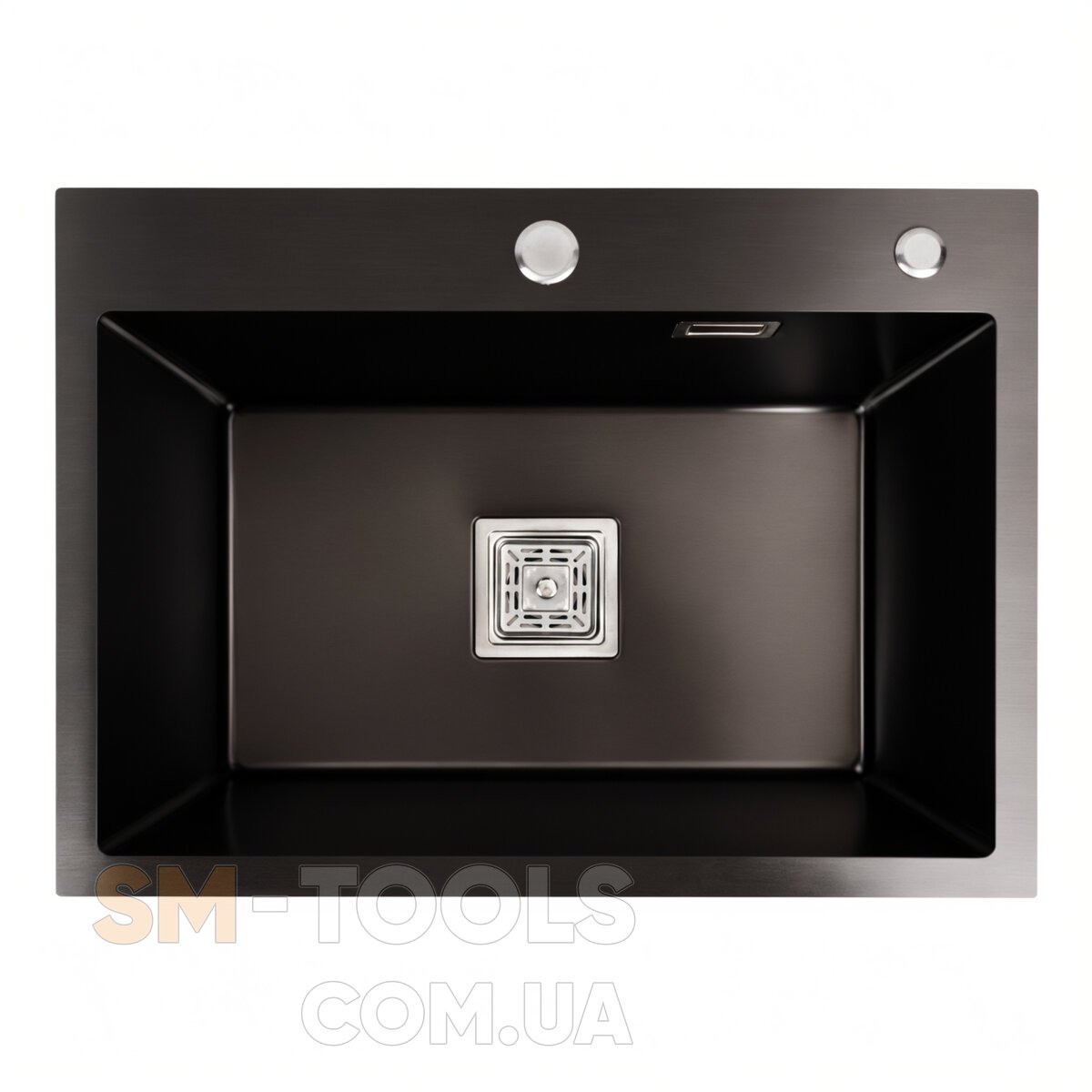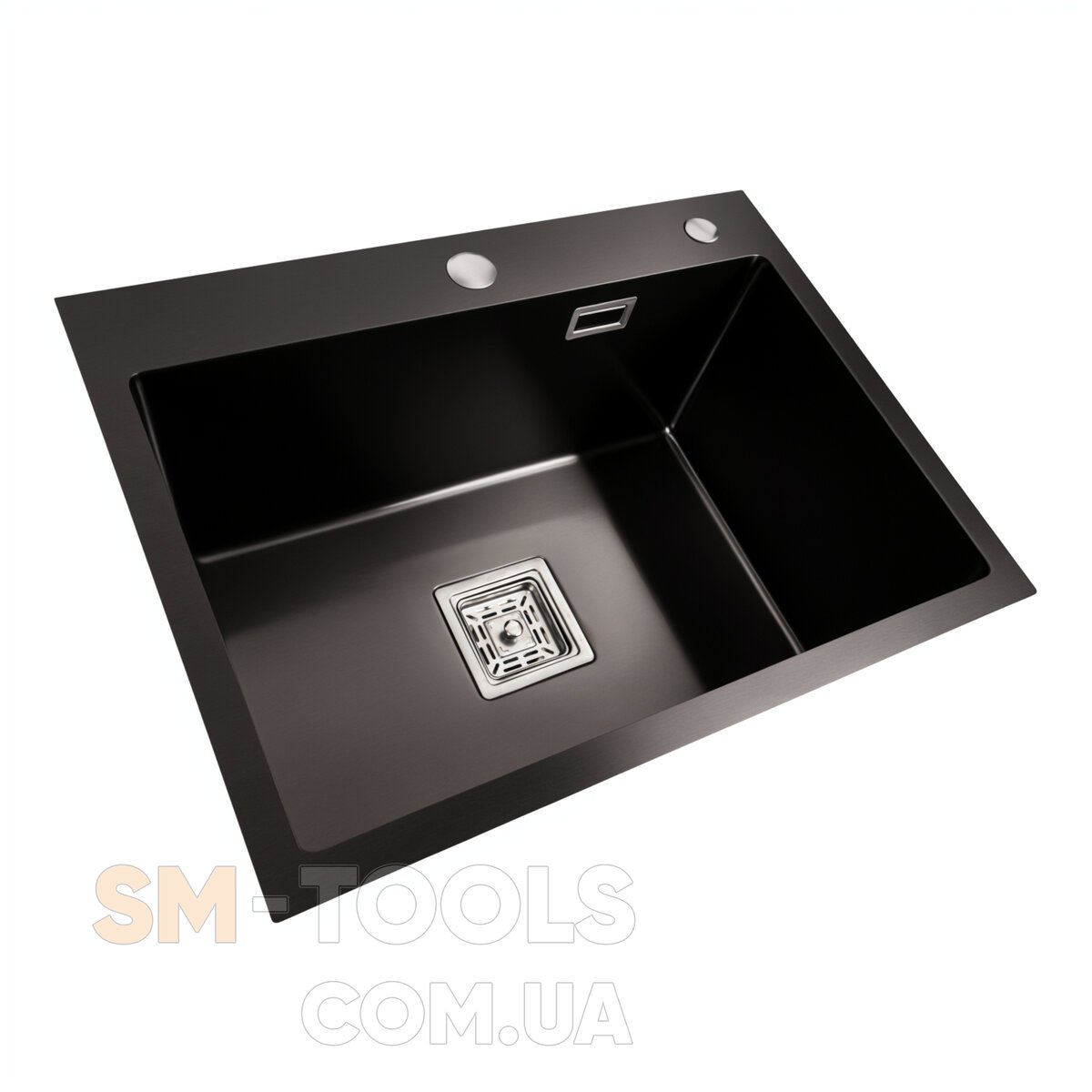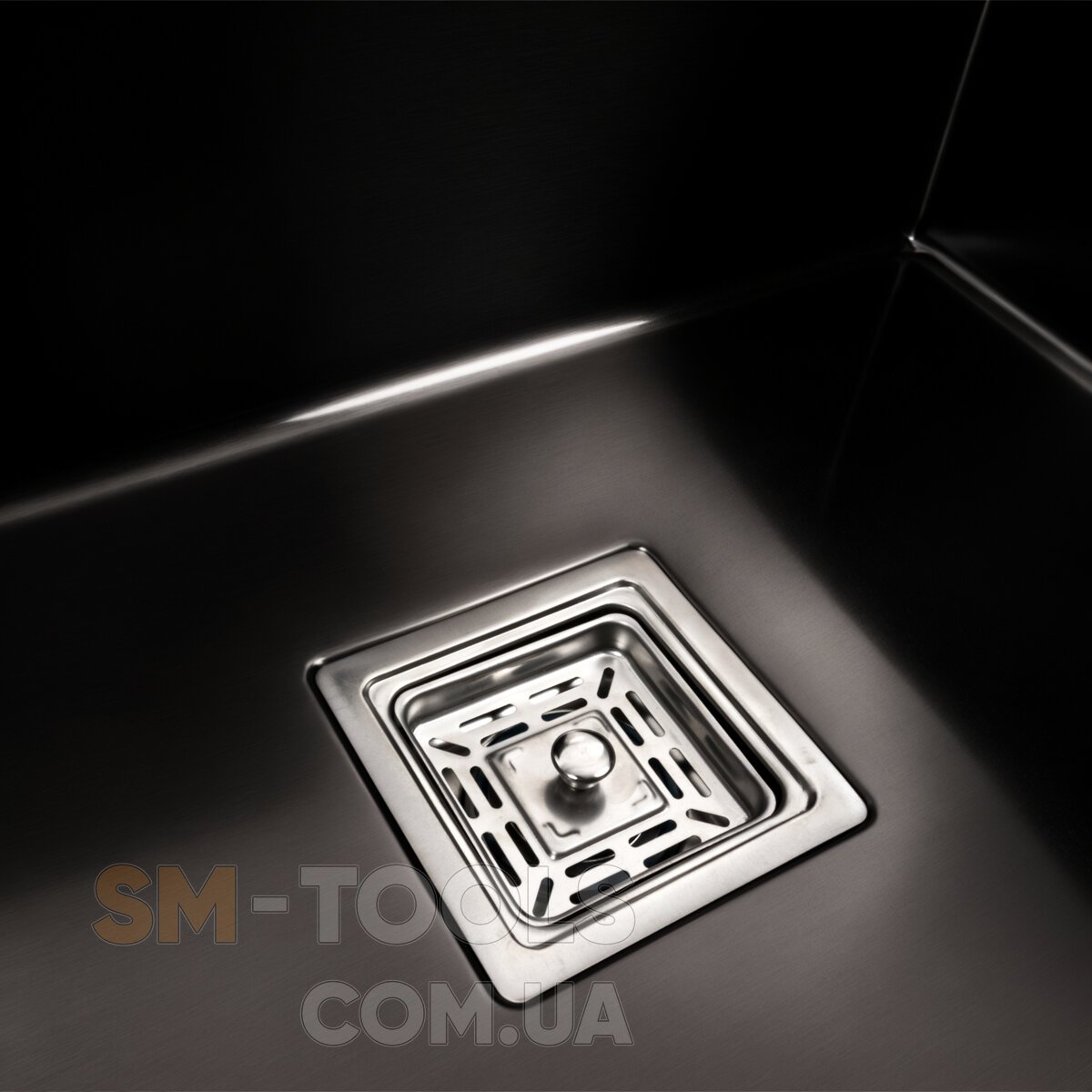 Опис Кухонна мийка Platinum Handmade PVD 580х430х220 чорна (товщина 3,0/1,0 мм квадратний сіфон)