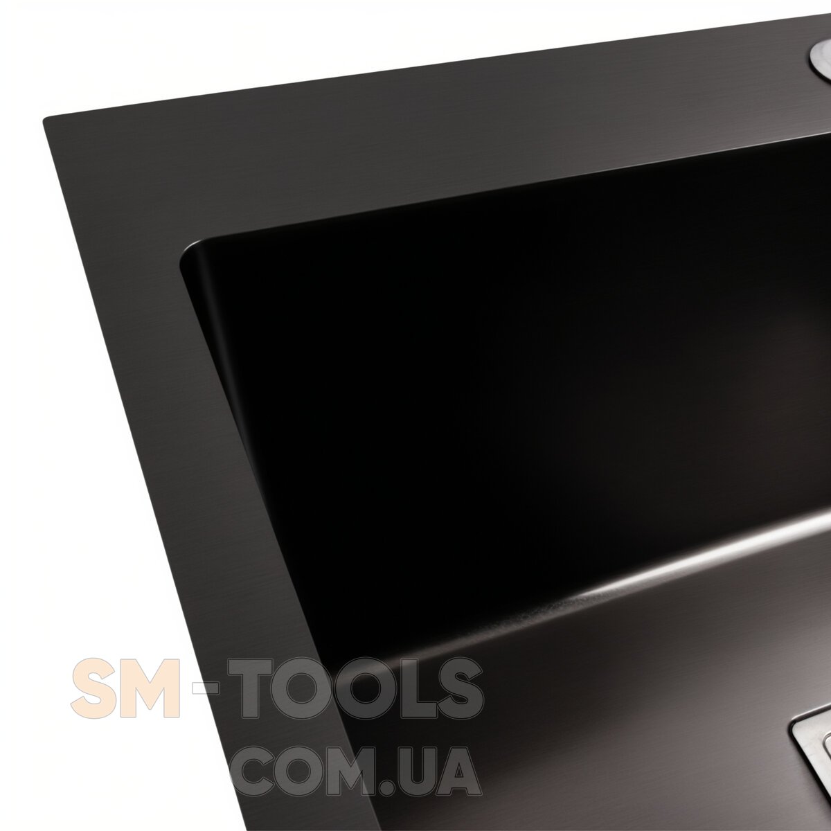 Кухонна мийка Platinum Handmade PVD 580х430х220 чорна (товщина 3,0/1,0 мм квадратний сіфон)