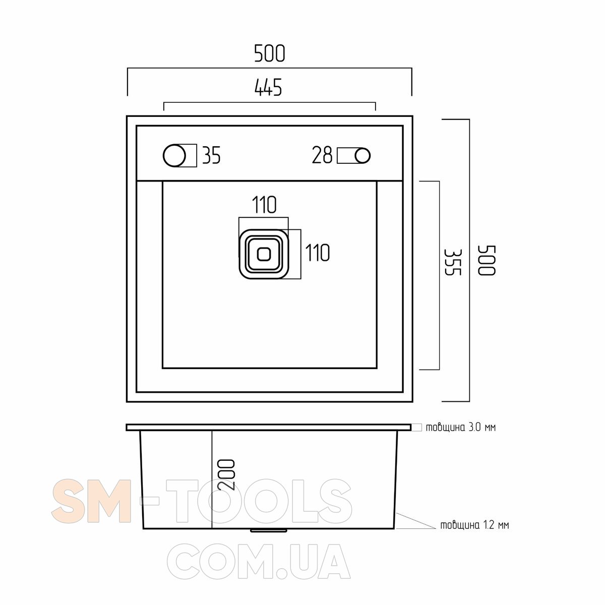 Характеристики Кухонна мийка прихована нержавійка Platinum TZ 50*50