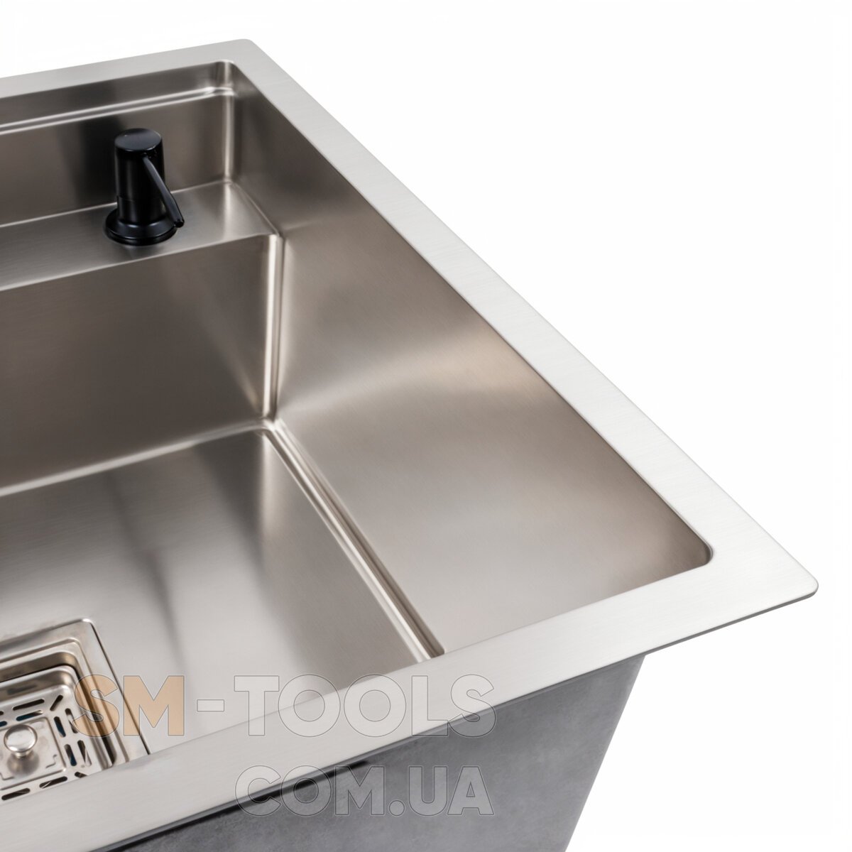 Оригінальний дизайн цієї мийки дозволяє приховати її, створюючи гармонійний інтер'єр вашої кухні. Крім того, ви можете легко встановити її на стільницю, надаючи приміщенню більше простору та функціональності.