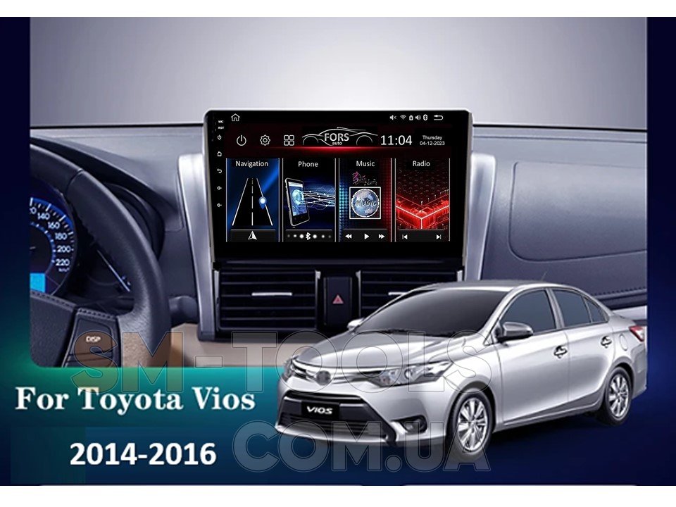Штатна магнітола FORS.auto М300 для Toyota Vios (3+32Gb, 10") 2014-2016